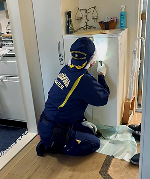 自宅の部屋に留まっていた妻は、次々と部屋に入って捜査を始める捜査員たちに圧倒されながら、現場検証や指紋採取の様子を見守った。そして、刑事から事情聴取を受けた際に、事件後の対策として、「すぐに引っ越した方がいい」と助言された。