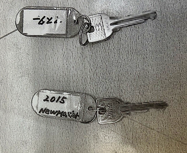マンションの管理人が被害者宅に侵入する際に使ったマスターキー=下(被害者に開示された事件記録より ※鍵の形状を伏せるために一部でモザイク加工をしています)