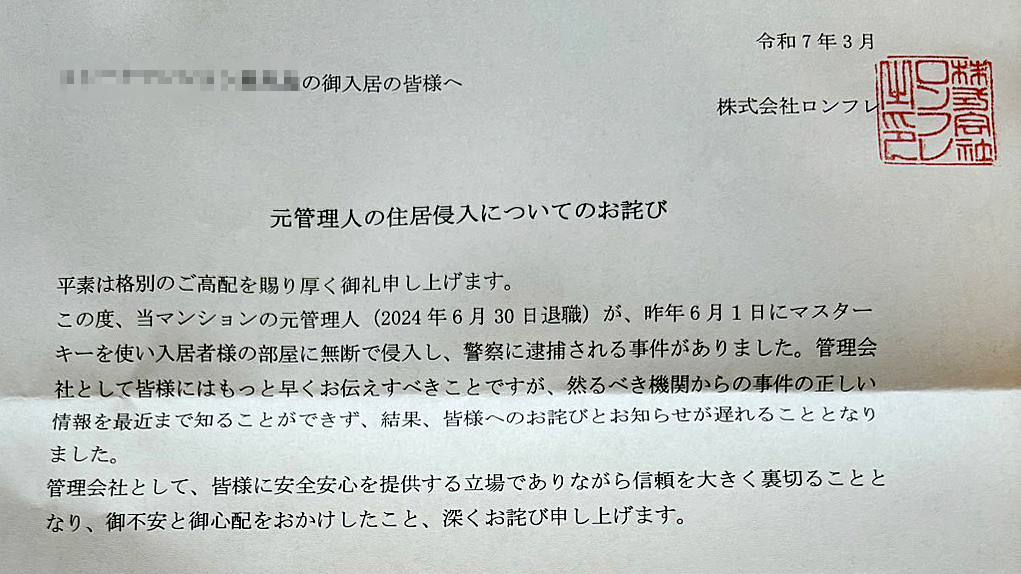 管理会社、社員が有罪になっても謝罪と補償は一切なし【悪用されたマスターキー⑤】
