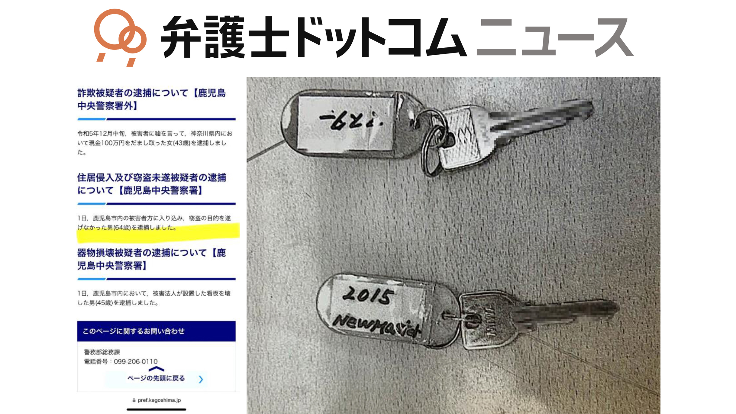 鹿児島市内のマンションで2024年6月、管理人の男がマスターキーを使って入居者の留守宅に侵入し、その部屋で暮らす女性の下着を物色したとして、住居侵入で有罪となった事件――。